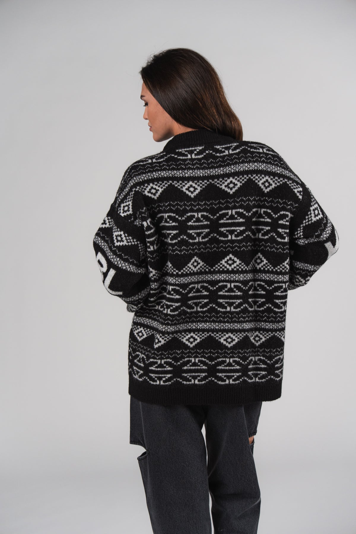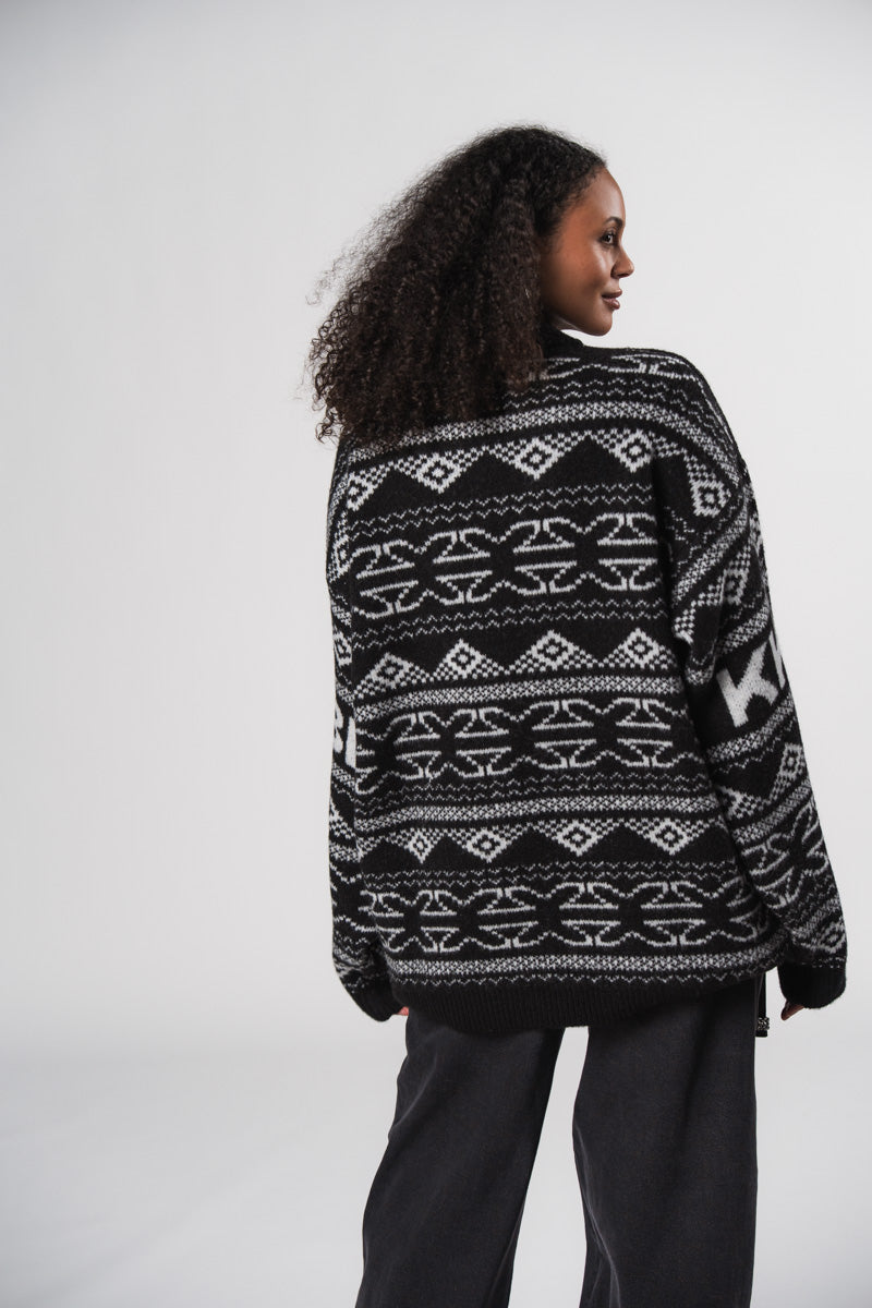 Dieser kuschlige Pullover in elegantem Schwarz kommt jetzt in einem neuen, kompakteren Oversize-Schnitt.