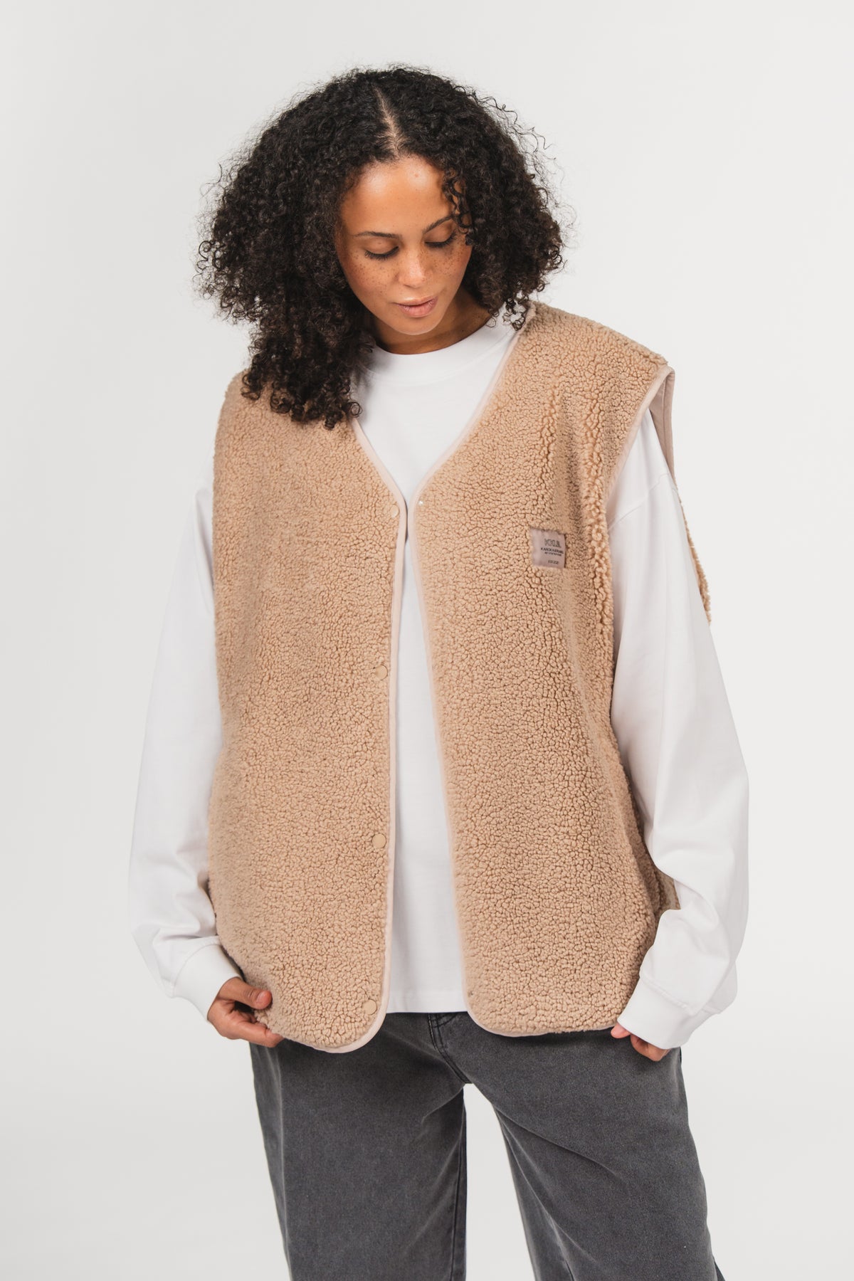Eine kuschelige Teddyweste – der perfekte Layering-Piece für kühle Tage.