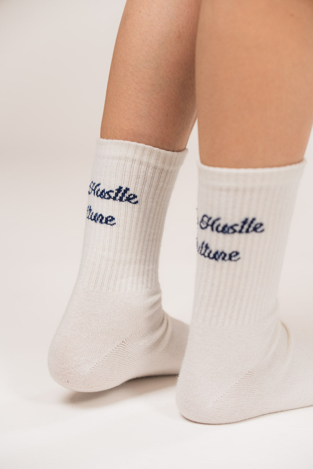 Bequeme Socken mit eingestricktem Schriftzug für den Alltag.