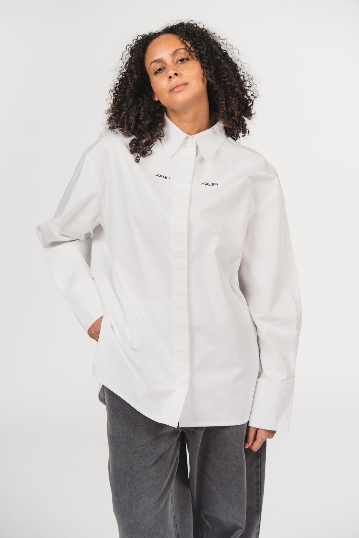 Eine klassische weiße Bluse mit raffinierten Details für einen zeitlosen Look.