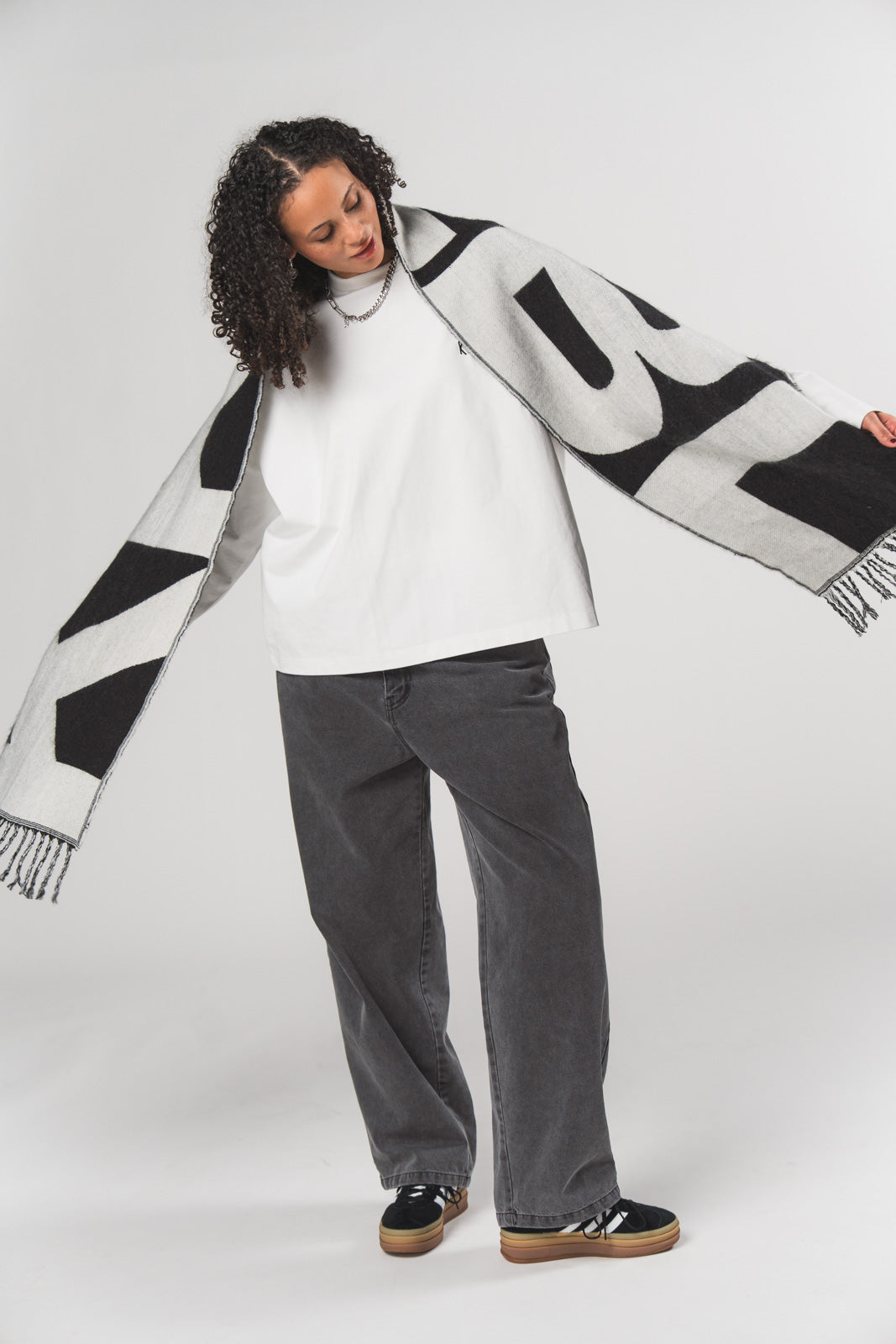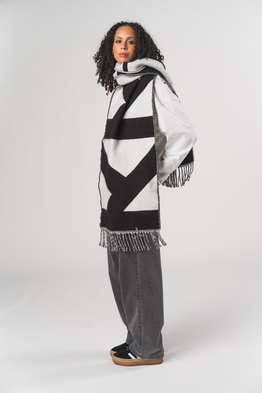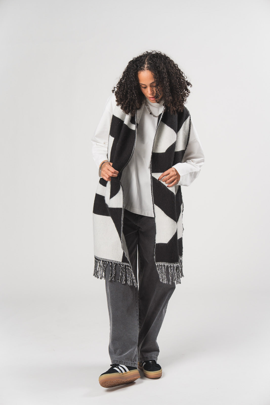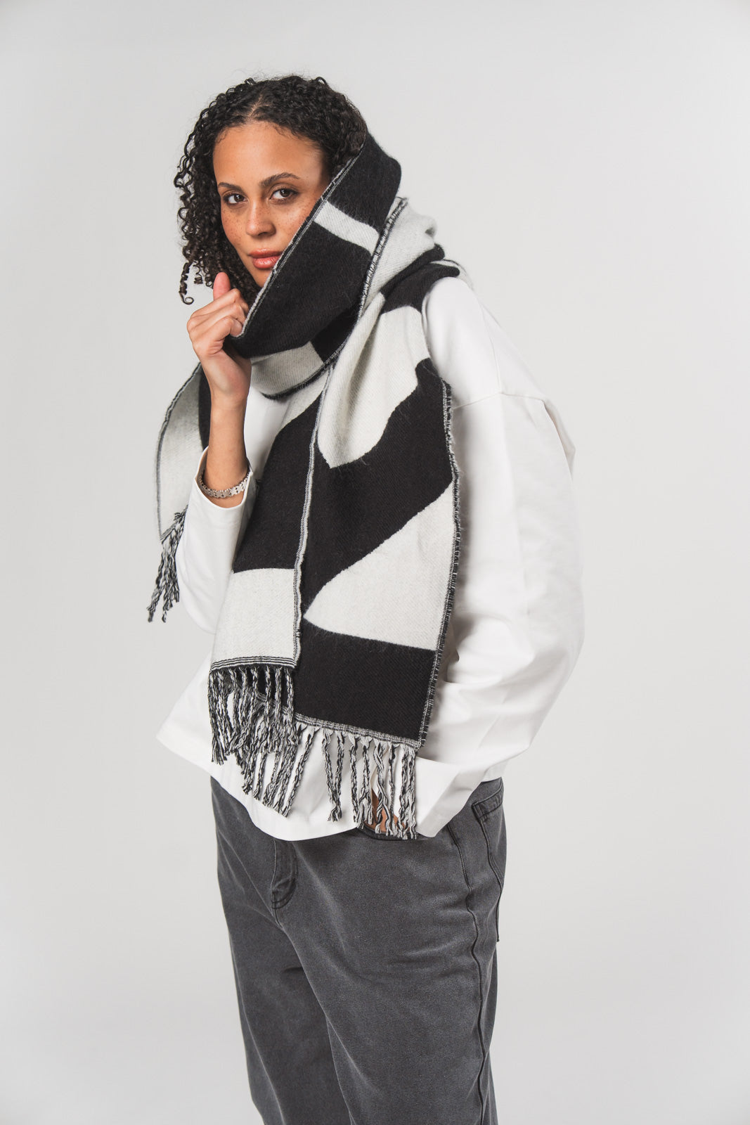 Ein zweifarbiger Schal, der durch seinen modernen Kontrast und hochwertige Verarbeitung überzeugt.