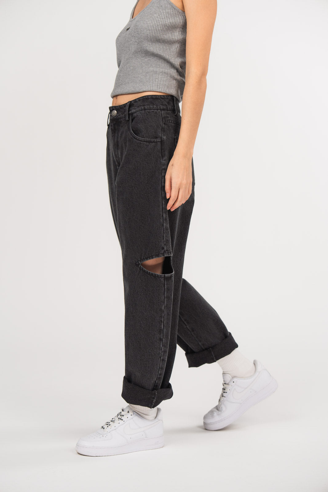 Denim Pants Cut Out Black
