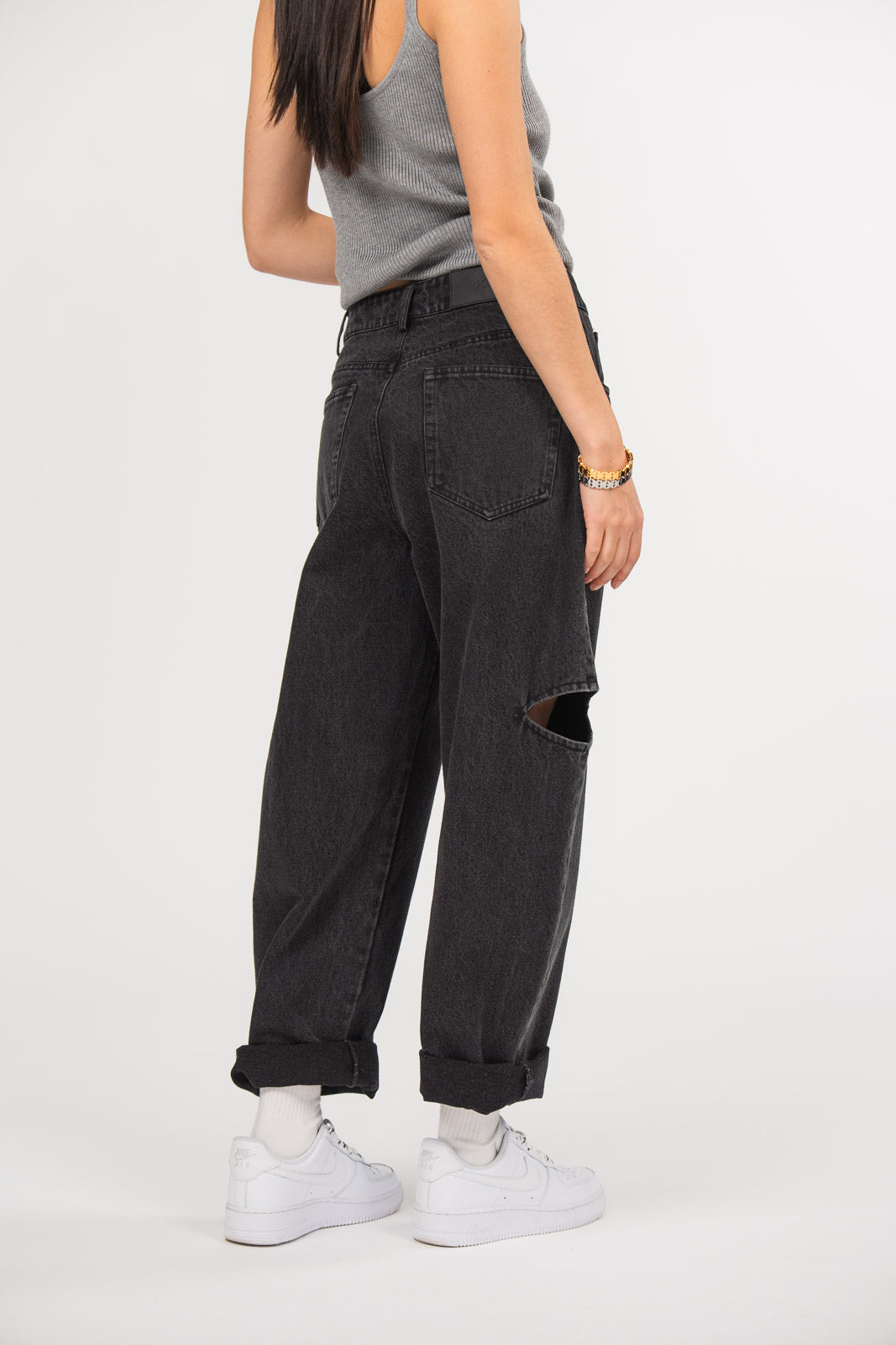 Produktaufnahme: Rückansicht schwarze Jeans mit Cut-Out Details aus der Welcome Blakk Collection