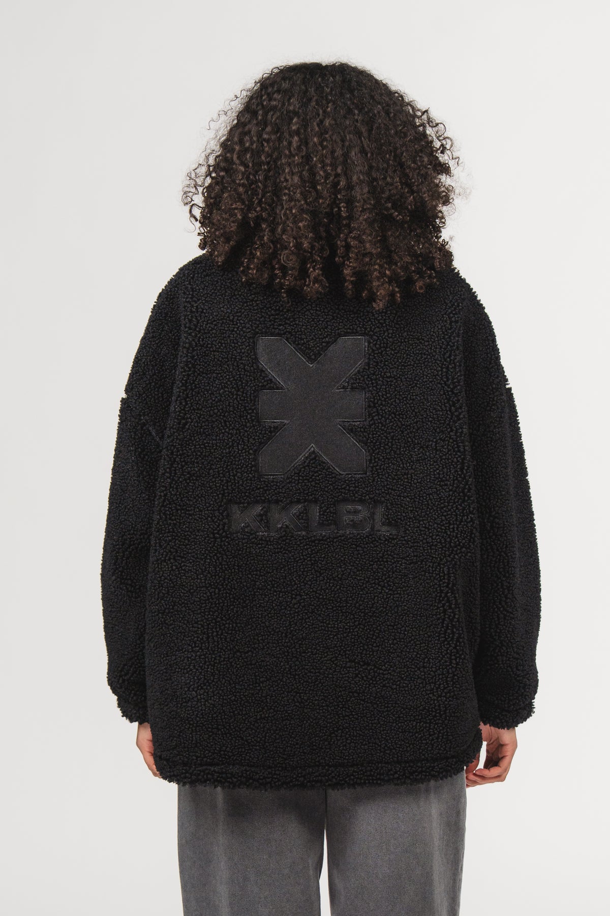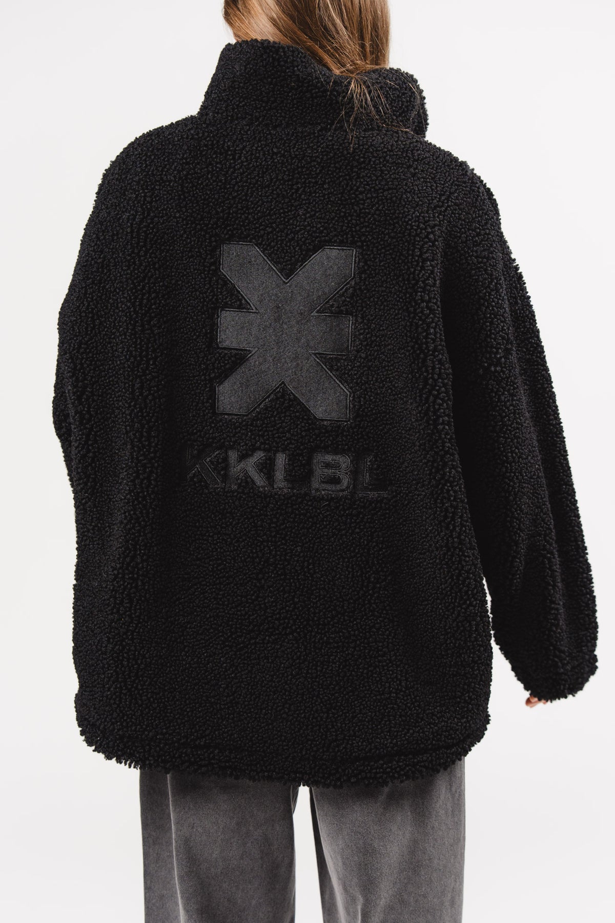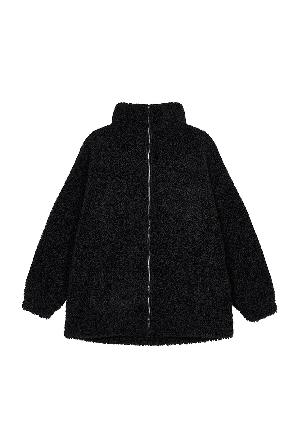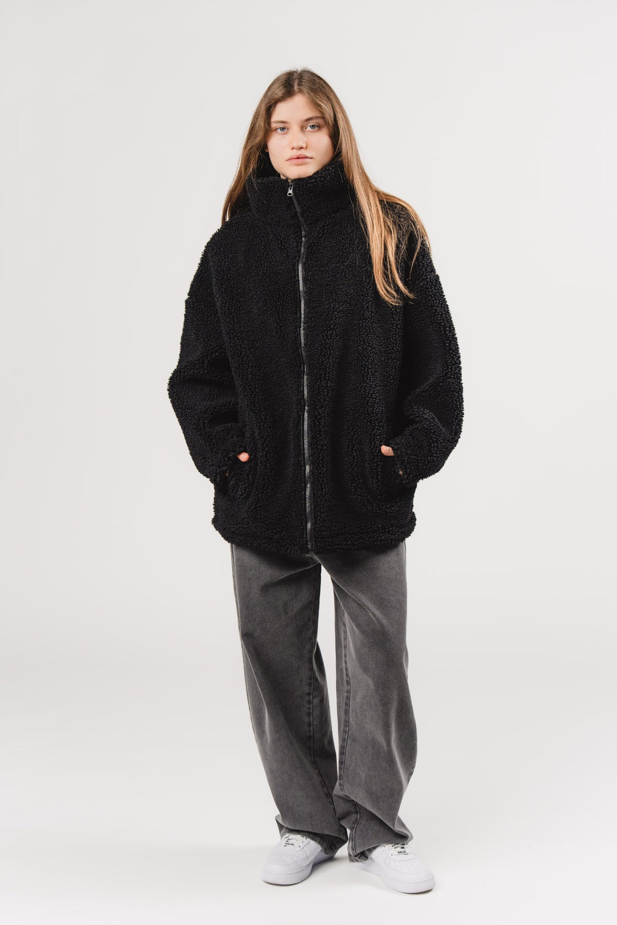 Eine kuschelige Teddy-Jacke in klassischem Schwarz – der perfekte Begleiter für kalte Tage.
